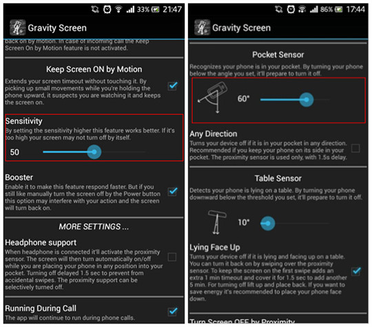 • Pocket Sensor: Turns the screen off if your phone is in your pocket.